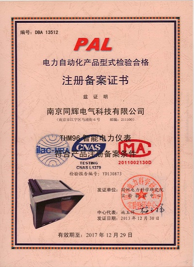 電力自動(dòng)化產(chǎn)品型式檢驗合格注冊備案證書(shū)